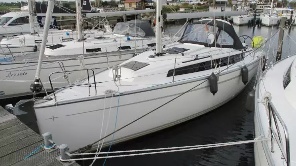 Rollgroßsegel, Rollgenua Furlex, Volvo Penta D1-30, 27PS, Ankerausrüstung, Festmacher, Fender, Sprayhood, Cockpittisch mit Klappflügeln, elektr. Ankerwinsch, Teak im Cockpit, Doppelsteueranlage, Badeplattform