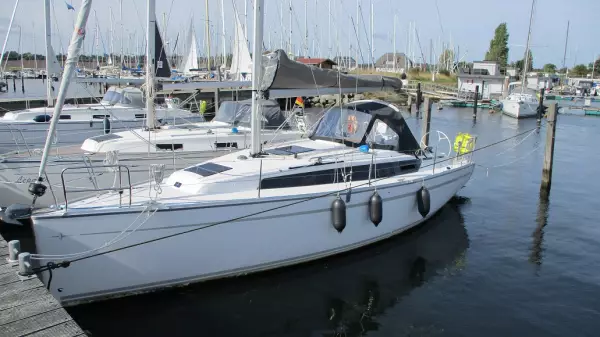 Lattengroßsegel Rollgenua Furlex Volvo Penta D1-30 und Volvo sail-drive Pflugscharanker, verzinkt Ankerwinsch & Ankerkette Festmacherleinen Fender Landstromanschluss 220 Volt & Kabel Sprayhood & lazybag Cockpittisch mit Klappflügeln Teak im Cockpit Zierstreifen schwarz