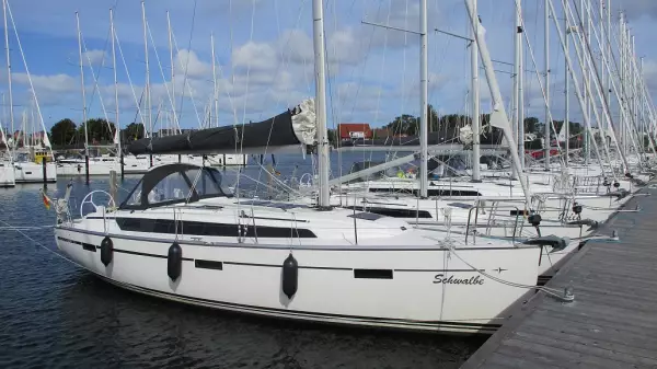 battened main sail, furling genoa Furlex system Volvo Penta D1-30 and Volvo sail-drive Anchor package anchor rope with anchor chain anchor with anchor rope mooring lines fenders AC shore supply 220 volts battery charger for AC shore supply CE adaptor and cable Sprayhood Electr. Windlass Floorboards Ocean Line Bow thruster Teak in cockpit Cockpit table with foldable leaves Hull stripes in silk grey Shallow keel 1,63m, lazybag