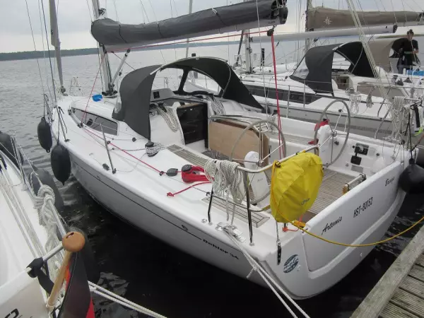 Lattengroß, Genua Yanmar 3YM30 Anker Lewmar Delta 16kg elektr. Ankerwinsch mit Ankerkette Lazy-jacks und Lazybag, schwarz Festmacherleinen & Fender Landanschluss 220 Volt Ladegerät für 220 Volt Landanschluss CE Adapter und Kabel Sprayhood, schwarz Doppelsteueranlage Arbeitsplatte Pantry, weiß Teak im Cockpit und auf Decksaufbau Cockpittisch mit Teakflügeln Springklampen Batteriepaket,1x 90 Ah + 2x 160 Ah