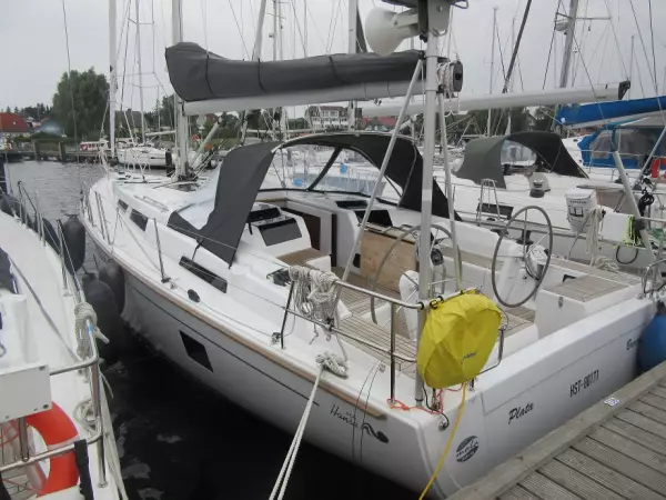 Yanmar 4JH57 Full battened main sail, self-tacking jib plough anchor, zinc coated Delta anchor lazy-jacks mooring lines fenders AC shore supply 220 volts battery charger for AC shore supply CE adaptor and cable sprayhood electr. windlass cockpit in teak battery package 1x 90Ah, 2x 160Ah rail gate openings Bow thruster Shallow keel 1.82 m Rub rail
