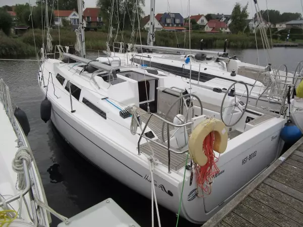 battened main sail, self-tacking jib plough anchor, zinc coated Electr. windlass with anchor chain Lazybag, grey mooring lines fenders AC shore supply 220 volts battery charger for AC shore supply CE adaptor and cable Sprayhood, grey Cockpittable Yanmar, Saildrive, folding propeller Cruising Package Shallow keel 1,55m