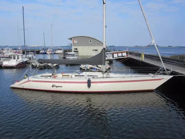 battened main sail Dacron AST genoa Dacron AST & UV cover Anchor with lead line Self tacking jib and rail Boom cover mooring lines fenders AC shore supply 220 volts battery charger for AC shore supply CE adaptor and cable Sprayhood Rodkicker Seldén Volvo Penta Diesel with saildrive Volvo Penta Folding propeller spinnaker and spinnaker boom Spinnaker liftsystem 8 winches from Andersen 3 winch handles