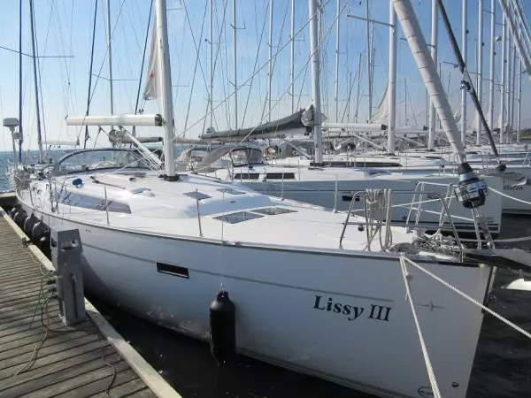 furling main sail, furling genoa Furlex Volvo Penta D2-75 and Volvo sail-drive plough anchor, zinc coated anchor rope with anchor chain anchor with anchor rope electrical anchor winch mooring lines fenders AC shore supply 220 volts battery charger for AC shore supply CE adaptor and cable Sprayhood LFS-savety package Teak on cockpit floor Additional water tank 150l Cove line silk grey Intercoastal waterway rig