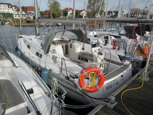Rollgroßsegel Rollgenua neu, Furlex Volvo Penta D1-20 und Volvo sail-drive Pflugscharanker, verzinkt Ankerleine & Ankerkette Festmacherleinen Fender Landstromanschluss 220 Volt & Kabel Sprayhood Springklampen Flachkiel 1,50m